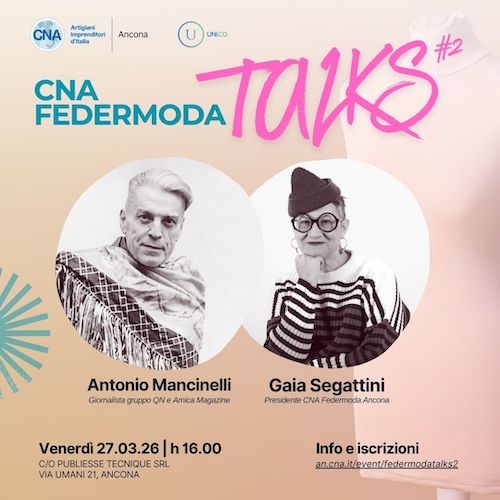 “Portare un osservatore autorevole come Antonio Mancinelli dentro un’azienda simbolo della nostra manifattura significa creare un momento di confronto reale tra chi racconta la moda e chi la rende possibile ogni giorno con il proprio lavoro – dichiara Gaia Segattini, presidente di CNA Federmoda Ancona -. Le imprese della filiera moda del nostro territorio sono parte integrante del successo del Made in Italy nel mondo e iniziative come CNA Federmoda Talks servono proprio a rafforzare la consapevolezza del valore culturale, produttivo e identitario del nostro saper fare.”