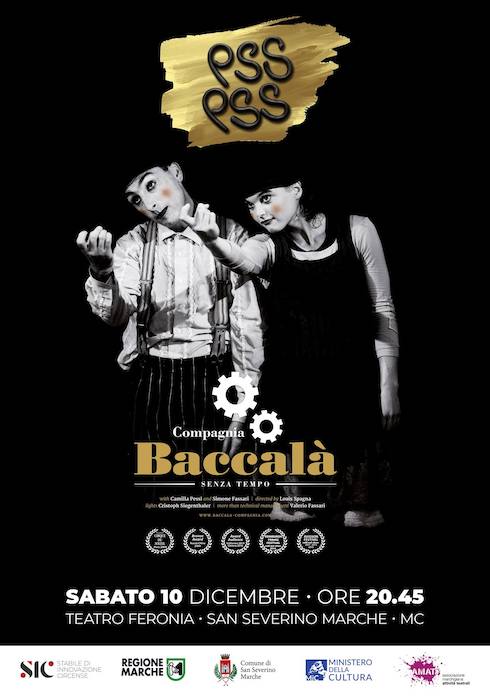 Nel 2008 Valerio Fassari, artista di teatro, musicista e vero amico, si è unito alla compagnia per accompagnarla e sostenerla durante la partecipazione ad importanti festival internazionali di circo come a Mosca, in Cina e a Parigi al Festival du Cirque de Demain. Da quel momento la collaborazione si è sviluppata fino al punto da influenzare il lavoro del duo, e grazie al suo occhio esterno i Baccalà hanno approfondito la dimensione del clown teatrale e del gioco. Il 2010 è l’anno in cui il regista Louis Spagna completa questo lavoro di ricerca firmando la creazione dello spettacolo “Pss Pss”. Info http://www.sic-elgrito.com oppure Pro Loco San Severino Marche, telefono 0733 638414