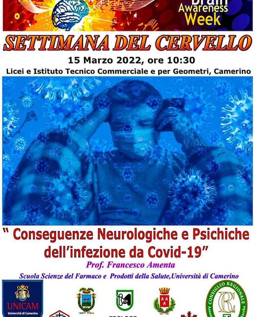 Il gruppo di Anatomia Umana coordinato dal prof. Francesco Amenta, proseguendo una tradizione di impegno pluriennale, organizza per il prossimo 15 marzo presso i Licei di Camerino e l’Istituto Tecnico Commerciale e per Geometri di Camerino, un seminario sul tema “Conseguenze neurologiche e psichiche dell’infezione da Covid-19”. Il tema scelto quest’anno è molto attuale considerando che quasi il 40% dei pazienti che hanno contratto la malattia lamenta di soffrire di disturbi neurologici di vario tipo e gravità: mal di testa, offuscamento della mente e disturbi di memoria. Dati epidemiologici dimostrano una correlazione almeno parziale con la gravità del Covid-19: circa il 70% dei pazienti con malattia di grado medio-grave lamenta sintomi neurologici, fra cui stanchezza cronica, disturbi di memoria e del sonno, a mesi di distanza dalla risoluzione della malattia, mentre tra le complicanze più gravi vanno segnalati danni cerebrali diffusi di tipo infiammatorio o metabolico (encefalopatie tossiche-metaboliche), crisi epilettiche e ictus cerebrale. Problematiche estremamente importanti cui la ricerca scientifica sta cercando di dare delle risposte concrete nel comprenderne appieno i meccanismi fisiopatologici.