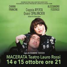 MACERATA – Prenderà il via il 14 ottobre, al Teatro Lauro Rossi, la nuova stagione 2025-26 promossa dal Comune di Macerata con l’AMAT e il contributo di Regione Marche e Ministero della Cultura e che prevede 10 titoli per 17 appuntamenti. Sul palco Chiara Francini e Alessandro Federico che porteranno in scena il 14 e il 15 ottobre, alle ore 21.00, “Coppia aperta quasi spalancata” di Dario Fo e Franca Rame, per la regia Alessandro Tedeschi.