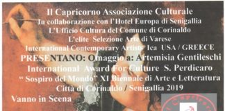 Oggi l'inaugurazione presso il Teatro Carlo Goldoni dell' XI Biennale di Arte e Letteratura "Città di Corinaldo / Senigallia, 2019