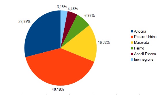 La provincia di Pesaro Urbino continua ad essere la più colpita dall’inizio del contagio ; oggi si registrano 15 nuovi casi sui 28 nuovi positivi della regione. La provincia di Ascoli Piceno si dimostra invece in assoluto la meno colpita di tutta la regione Marche.