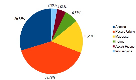Del totale dei casi positivi 1789 ( ieri 1785) si riferiscono alla provincia di Ancona, 2411 (ieri 2401) a quella di Pesaro-Urbino ,la più colpita, 985 (ieri 976) alla provincia di Macerata,416 (ieri 412) a quella di Fermo, 276 (ieri 275) a quella di Ascoli Piceno .Il servizio sanitario regionale delle Marche segue anche 181 (ieri 179) casi fuori regione.