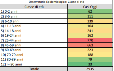 2.935 casi positivi rilevati e 1decesso .Al 20% l’occupazione delle intensive, al 30% quella dell’area non critica.In ulteriore calo il tasso di incidenza cumulativo