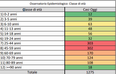1.275 casi positivi rilevati e 1 decesso.All’1% l’occupazione delle intensive, al 13% quella dell’area non critica. Scende il tasso di incidenza cumulativo