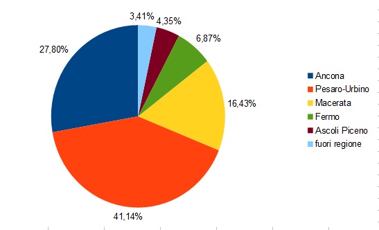 La provincia di Pesaro Urbino continua ad essere la più colpita dall’inizio del contagio.Anche oggi su 16 casi positivi in regione 10 sono di tale provincia (62%) . La provincia di Ascoli Piceno si dimostra invece in assoluto la meno colpita di tutta la regione Marche.La provincia di Fermo da sei giorni non ha nuovi casi positivi,quella di Ascoli da quattro giorni,quella di Ancona da due giorni.