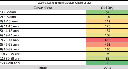 I nuovi casi sono così distribuiti: