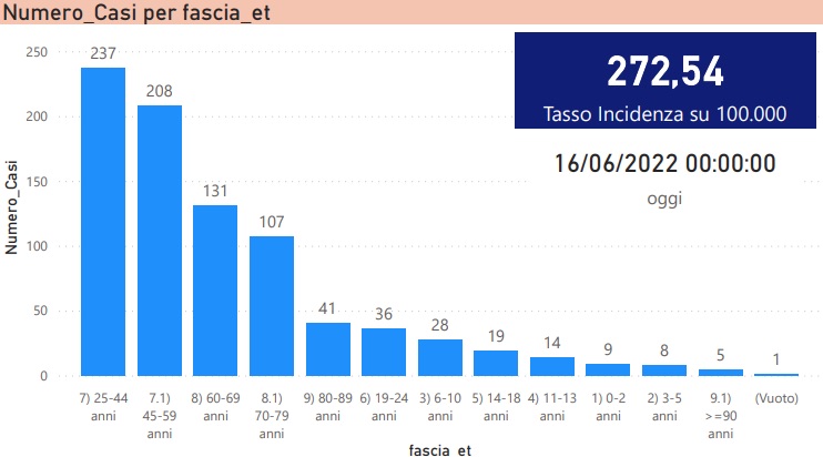 Dal bollettino quotidiano di oggi, 16 giugno 2022, del Ministero della Salute emergono i seguenti dati relativi all’Italia.Sono 36.573 i nuovi positivi nelle ultime 24 ore , per un totale di 17.773.764 da inizio pandemia.I tamponi effettuati nelle ultime 24 ore sono 194.676 complessivi ( test molecolari + test rapidi antigenici). L’incidenza del numero di persone risultate positive rispetto al numero giornaliero di tamponi effettuati è del 18,8% (ieri 16,3%).