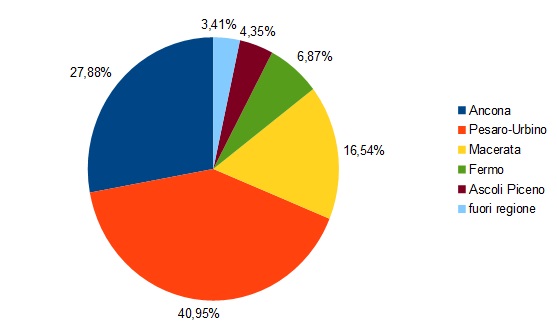 La provincia di Pesaro Urbino continua ad essere la più colpita dall’inizio del contagio . La provincia di Ascoli Piceno si dimostra invece in assoluto la meno colpita di tutta la regione Marche.
