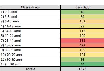 I nuovi casi sono così distribuiti: