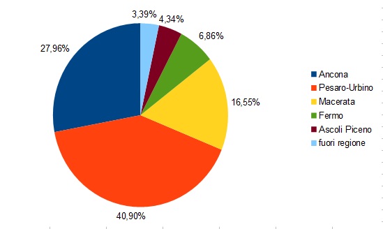 La provincia di Pesaro Urbino continua ad essere la più colpita dall’inizio del contagio . La provincia di Ascoli Piceno si dimostra invece in assoluto la meno colpita di tutta la regione Marche.