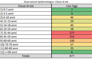 877 casi positivi rilevati e 7 decessi.Al 3% l’occupazione delle intensive, al 18% quella dell’area non critica.Ancora in calo il tasso di incidenza cumulativo
