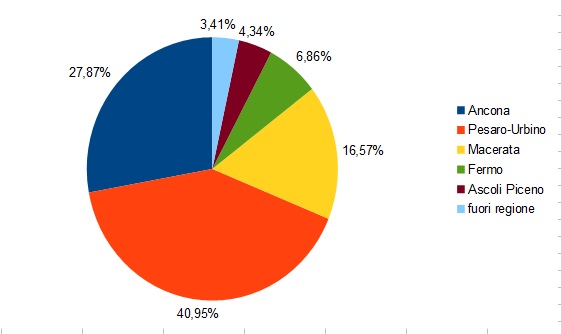 Del totale dei casi positivi 1860 si riferiscono alla provincia di Ancona,2733 a quella di Pesaro-Urbino , 1106 alla provincia di Macerata, 458 a quella di Fermo, 290 a quella di Ascoli Piceno .Il servizio sanitario regionale delle Marche segue anche 228 casi fuori regione.