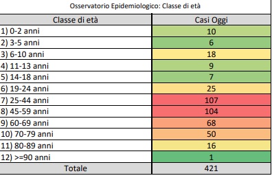 421 casi positivi rilevati e nessun decesso.All’1% l’occupazione delle intensive, al 7% quella dell’area non critica. Scende ancora il tasso di incidenza cumulativo
