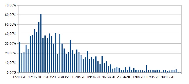 Dopo il brusco aumento dei contagi del 4 maggio per altro motivato dal fatto che tale dato relativo ai tamponi raggruppava casi del 29, del 30 aprile, dell’1 e del 2 maggio, i valori degli ultimi giorni rientrano nell’ottica del rallentamento della curva epidemiologica. Dal 18 aprile infatti gli incrementi giornalieri oscillano dallo 0,2% al 6% segno che il contagio sta perdendo vigore. Altri segnali significativi di una tendenza positiva vengono dal numero di dimessi/guariti che cresce di giorno in giorno e dal calo di terapie intensive e nuovi ricoveri.Siamo sulla strada giusta,ma bisogna continuare a rispettare le regole affinché si possano avere risultati sempre più confortanti.