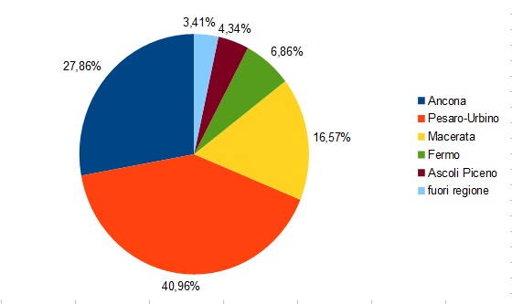 La provincia di Pesaro Urbino continua ad essere la più colpita dall’inizio del contagio . La provincia di Ascoli Piceno si dimostra invece in assoluto la meno colpita di tutta la regione Marche.