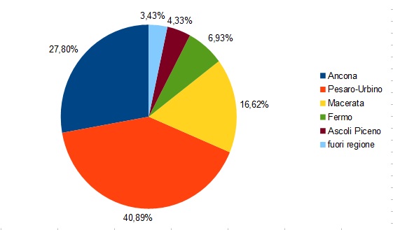 La provincia di Pesaro Urbino continua ad essere la più colpita dall’inizio del contagio . La provincia di Ascoli Piceno,dove non si registrano nuovi casi da sei giorni, si dimostra invece in assoluto la meno colpita di tutta la regione Marche.
