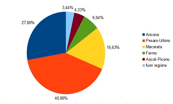 La provincia di Pesaro Urbino continua ad essere la più colpita dall’inizio del contagio . La provincia di Ascoli Piceno,dove non si registrano nuovi casi da sette giorni, si dimostra invece in assoluto la meno colpita di tutta la regione Marche.