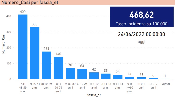 Il tasso di incidenza cumulativo su 100.000 abitanti oggi è 468,62(ieri 435,44).