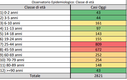 2.821 casi positivi rilevati e 4 decessi.Al 3% l’occupazione delle intensive, al 22% quella dell’area non critica.Stabile il tasso di incidenza cumulativo