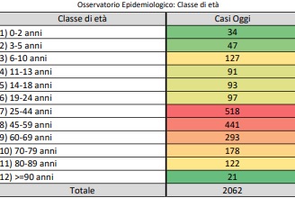 2.062 casi positivi rilevati e 5 decessi.Al 4% l’occupazione delle intensive, al 22% quella dell’area non critica.In leggero calo il tasso di incidenza cumulativo