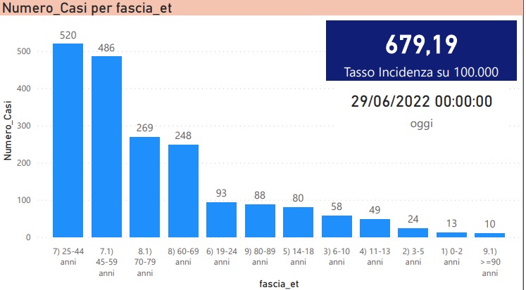 Dal bollettino quotidiano di oggi, 29 giugno 2022, del Ministero della Salute emergono i seguenti dati relativi all’Italia.Sono 94.165 i nuovi positivi nelle ultime 24 ore , per un totale di 18.438.877 da inizio pandemia.I tamponi effettuati nelle ultime 24 ore sono 357.210 complessivi ( test molecolari + test rapidi antigenici). L’incidenza del numero di persone risultate positive rispetto al numero giornaliero di tamponi effettuati è del 26,4% (ieri 11,6%).