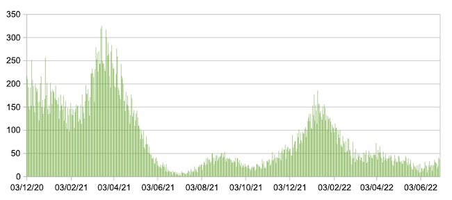 Da notare che il numero dei nuovi ingressi giornalieri nelle intensive dal 14 giugno è superiore a quello dello stesso periodo del 2021.