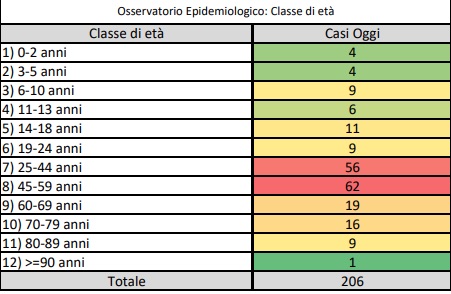 206 casi positivi rilevati e 2 decessi.Al 2% l’occupazione delle intensive, al 7% quella dell’area non critica. Scende ancora il tasso di incidenza cumulativo