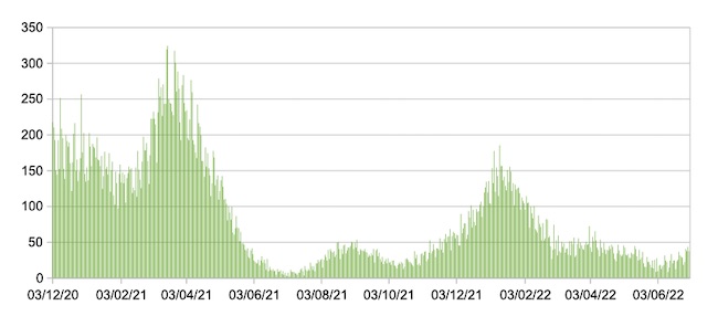 Da notare che il numero dei nuovi ingressi giornalieri nelle intensive dal 14 giugno è superiore a quello dello stesso periodo del 2021.