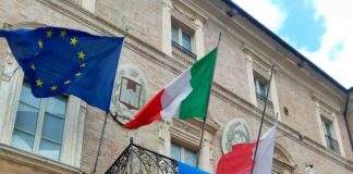 San Severino, la bandiera dell’Ucraina sulla facciata del Municipio