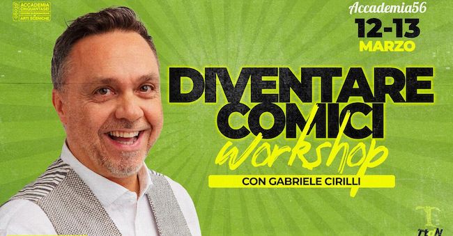 ANCONA – Gabriele Cirilli, il comico inventore di Tatiana, una delle maschere della comicità moderna più amate dal pubblico, è il protagonista del “Diventare comici Workshop” che si svolgerà sabato 12 e domenica 13 marzo presso l’Accademia56, la scuola di alta formazione alle arti sceniche di Ancona.