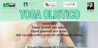 SPINETOLI – Riprenderà lunedì 19 settembre 2022 il corso di yoga olistico presso Danzarte in via 8 marzo 18...