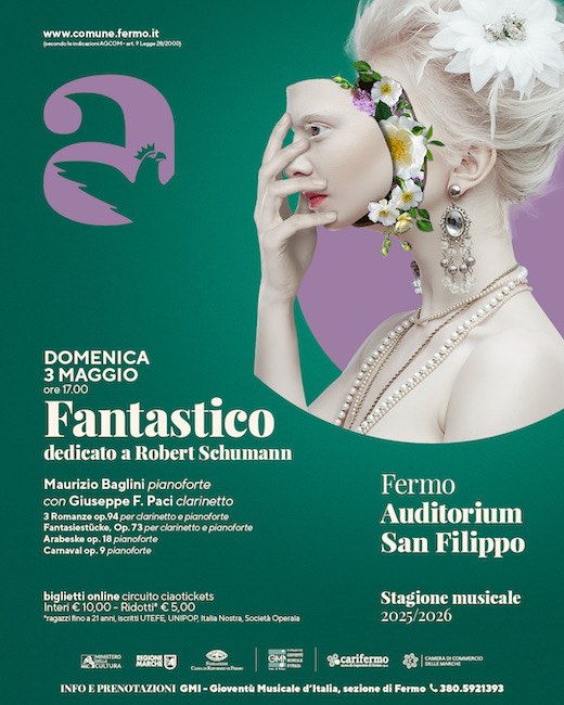 FERMO – Prosegue con un appuntamento di grande valore artistico la stagione 2025/2026 della Gioventù Musicale d’Italia – sezione di Fermo, che domenica 3 maggio alle ore 17.00 all’Auditorium San Filippo torna con “Fantastico”, dedicato a Robert Schumann.