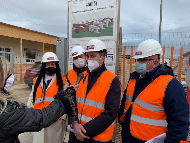 FERMO – L’assessore ai lavori pubblici Francesco Baldelli ha effettuato ieri mattina un sopralluogo nel cantiere del nuovo Ospedale di Fermo, insieme ai progettisti, all’impresa costruttrice Carron, ai consiglieri regionali Andra Putzu, Marco Marinangeli, Jessica Marcozzi, al sindaco di Fermo Paolo Calcinaro accompagnato dai consiglieri comunali Paola Gaggia e Sara Pistolesi.