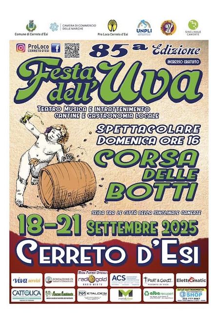Dal 18 al 21 settembre si svolgerà la Festa dell’Uva 2025. Nelle Cantine delle associazioni si potranno gustare piatti della tradizione e il Verdicchio. In programma musica, spettacoli teatrali, animazione per bambini, lotterie e tante sorprese