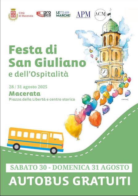 MACERATA – Si apriranno sabato 23 agosto, alle ore 17:00, con la mostra del Fischietto in Terracotta nelle vetrine dei negozi aderenti all’iniziativa, i festeggiamenti in onore del patrono della città, San Giuliano. Un ricco programma di appuntamenti che intreccia fede, tradizione e cultura della città di Macerata grazie all’organizzazione a cura della Pro Loco di Macerata, dalla Diocesi di Macerata, del Cif San Giuliano e del mondo associativo cittadino con il coordinamento e il sostegno dell’Amministrazione comunale. Come ogni anno, la comunità si raccoglie per una delle ricorrenze più sentite, in un clima di partecipazione e condivisione che coinvolge cittadini, istituzioni e visitatori.