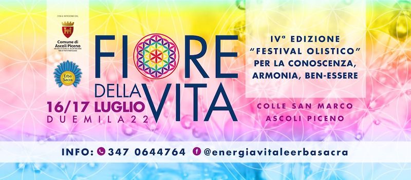 ASCOLI PICENO – Si svolgerà sabato 16 luglio e domenica 17 luglio 2022, presso Colle San Marco ad Ascoli Piceno, la quarta edizione del Fiore della vita – “Festival olistico” per la conoscenza, armonia, ben-essere, promosso dall’Associazione Culturale Erba Sacra Marche. E’ un evento annuale molto importante, aperto al pubblico, totalmente gratuito, che nei due anni precedenti non si è svolto a causa della pandemia, e che riprende con un programma ricchissimo.