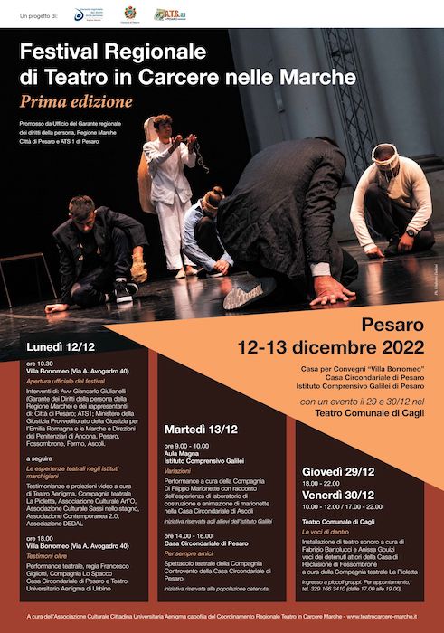 PESARO – Si terrà a Pesaro, lunedì 12 e martedì 13 dicembre 2022, il primo Festival Regionale di Teatro in Carcere, un progetto dell’Ufficio del Garante dei diritti della persona della Regione Marche e della Città di Pesaro con l’Ambito Territoriale Sociale 1, a cura dell’Associazione Culturale Cittadina Universitaria Aenigma capofila del Coordinamento Regionale Teatro in Carcere Marche.
