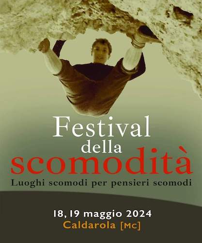 CALDAROLA (MC) – Sarà luogo di discussione e confronto con artisti, attivisti e pensatori il “Festival della Scomodità. Luoghi scomodi per pensieri scomodi”. Accolto nel centro Polivalente Tonelli di Caldarola in Via Moro, dalle 9,45 di oggi, sabato 18 maggio, il festival chiuderà alle 18,00 di domenica prossima. Ogni ora numerosi protagonisti provenienti da diverse regioni d’Italia sfideranno le convenzioni e si metteranno in discussione affrontando la scomodità del corpo, del sud, della coerenza, della violenza, della utopia, della creatività, dell’ostinazione, dell’età, della comunità, della poesia, della vita.