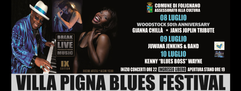 FOLIGNANO (AP) – L’Assessorato alla Cultura del Comune di Folignano, in collaborazione dell’Associazione Culturale Defloyd e con la direzione artistica di Massimo Piccioni, presenta la nona edizione di uno dei festival più attesi della stagione Picena: “Villa Pigna Blues Festival”.L’evento si terrà dall’8 al 10 luglio 2019 presso Villa Pigna di Folignano in Piazza Simon Bolivar.