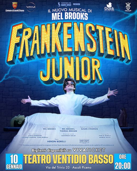 Sabato 10 gennaio 2026, presso il Teatro Ventidio Basso di Ascoli Piceno si terrà il musical “Frankenstein Junior”, tratto dal film cult di Mel Brooks e Gene Wilder