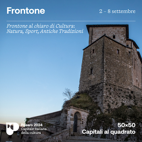 PESARO – Dal 2 all’8 settembre è il Comune di Frontone – insieme a Macerata Feltria – il nuovo protagonista di ‘50×50: Capitali al quadrato’, il progetto simbolo di Pesaro 2024. Lo stesso vede infatti i cinquanta Comuni della Provincia di Pesaro e Urbino, a turno, Capitale per una settimana lungo tutto il 2024. Il programma – dal titolo ‘Frontone al chiaro di Cultura: Natura, Sport, Antiche Tradizioni’ – è il risultato in ogni modo della condivisione con tutte le associazioni del Comune. Si svolge in particolare all’insegna di natura e sport, con numerosi momenti conviviali che ben rappresentano il valore dell’accoglienza che connota questo territorio.