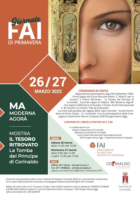 La visita sarà guidata dai ragazzi delle classi seconde- Scuola secondaria di primo grado I.C. Corinaldo con la partecipazione della Compagnia E-Sperimenti Dance Company GDO Gruppo Danza Oggi. La mostra e palazzo MA saranno visitabili a contributo libero a partire da 3 euro, nel pieno rispetto delle norme di sicurezza sanitaria, grazie ai volontari di 350 Delegazioni e Gruppi FAI attivi in tutte le regioni .