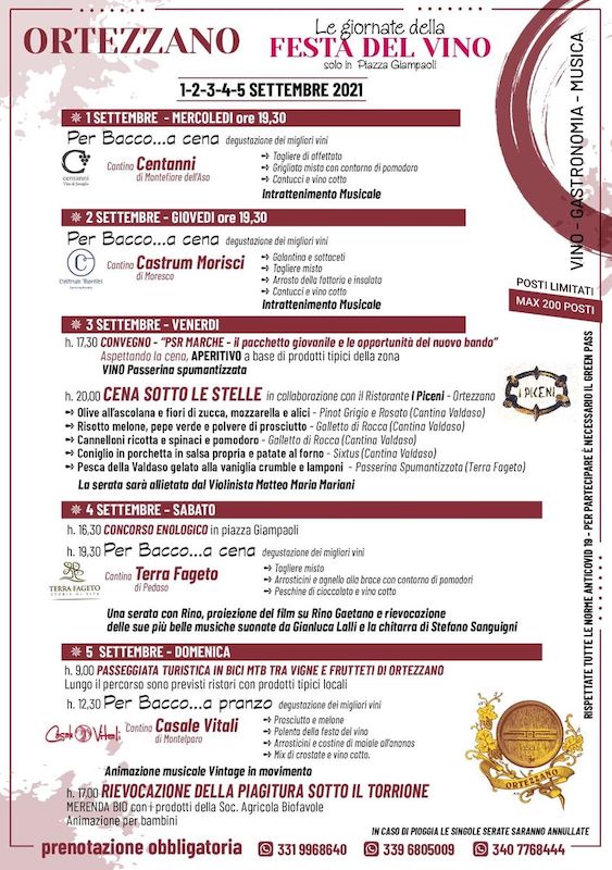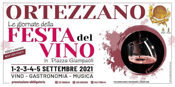 ORTEZZANO (FM) – Da mercoledì 1 settembre a domenica 5 settembre 2021, si terrà la “Festa del Vino a Ortezzano” in Piazza Giampaoli.