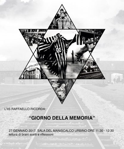 URBINO – La città di Urbino celebra il “Giorno della Memoria” con un’iniziativa realizzata grazie alla collaborazione fra l’Istituto di Istruzione Superiore “Raffaello” e l’Amministrazione comunale. L’appuntamento è fissato per questa mattina alle ore 11.30, nella Sala del Maniscalco (Ridotto del Teatro – Rampa di Francesco di Giorgio), dove alcuni studenti proporranno una riflessione sulla Shoah tramite la lettura di brani di alcuni scrittori e la presentazione di elaborati scritti dagli studenti. Il tutto accompagnato da varie musiche.