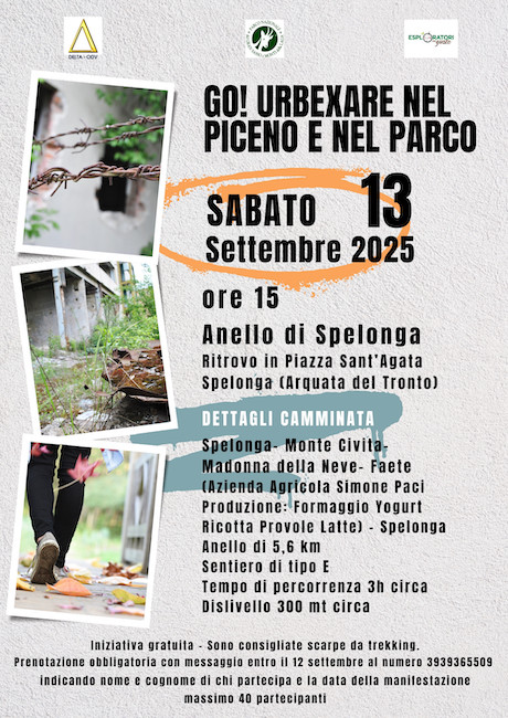 ARQUATA DEL TRONTO (AP) – Dopo i positivi riscontri delle prime quattro uscite, il progetto “Go – Urbexare nel Piceno”, ideato dall’associazione giovanile Delta – Odv, continua il suo viaggio alla scoperta del territorio.
