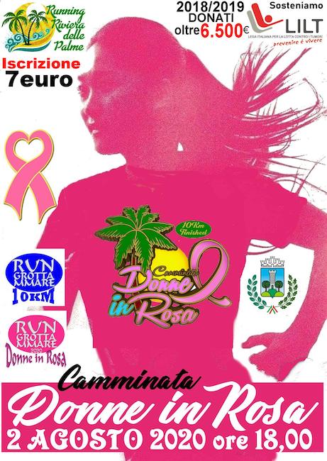GROTTAMMARE – Il 2 agosto 2020 si svolgerà sul lungomare sud di Grottammare l’evento podistico “Donne in Rosa”,giunto alla terza edizione.Il coinvolgimento degli appassionati di podismo e l’attenzione sul tema della solidarietà sono gli ingredienti che da due edizioni a questa parte rendono possibile il successo di questa manifestazione concertata con l’amministrazione comunale di Grottammare e sotto l’egida Uisp.
