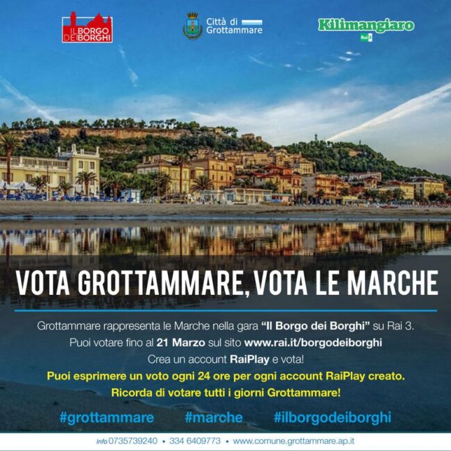 Ti suggeriamo di coinvolgere il maggior numero di persone perché votare il borgo di Grottammare significa votare per la nostra Regione Marche. Solo un passaparola costante, un accorto e continuo impegno di tutti durante queste settimane ci permetterà di “giocarci” la finale di domenica 4 aprile 2021.