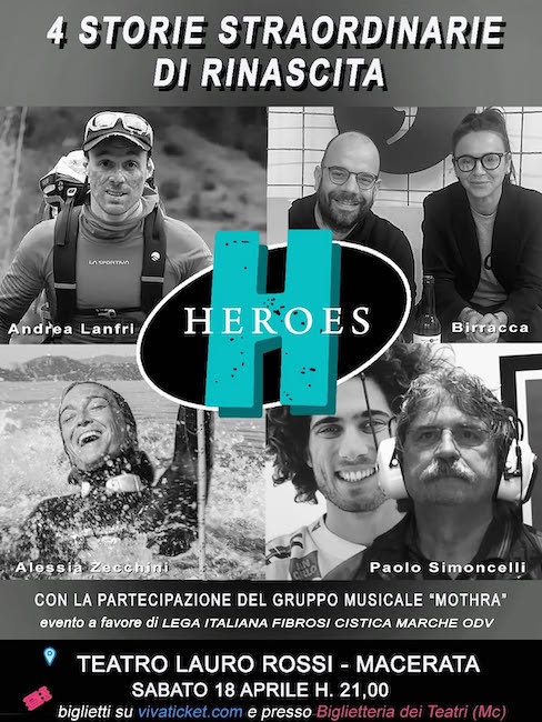 Heroes racconta quattro nuove storie emozionanti di coraggio, oltre i propri limiti al Teatro Lauro Rossi di Macerata con Andrea Lanfri, Birracca, Alessia Zecchini e Paolo Simoncelli