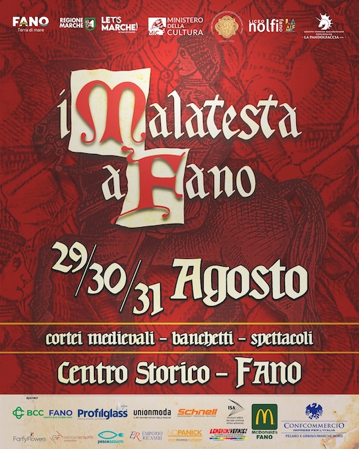 FANO – Nel week-end del 29, 30, 31 agosto 2025 torna nel cuore della città l’evento ‘I Malatesta a Fano’. Organizzato dal gruppo storico La Pandolfaccia, è frutto di una ricerca filologica sempre più dettagliata, anche grazie al supporto del Centro Studi Malatestiani.